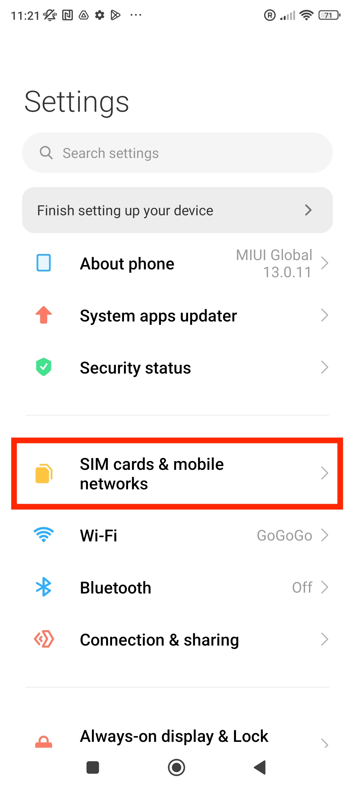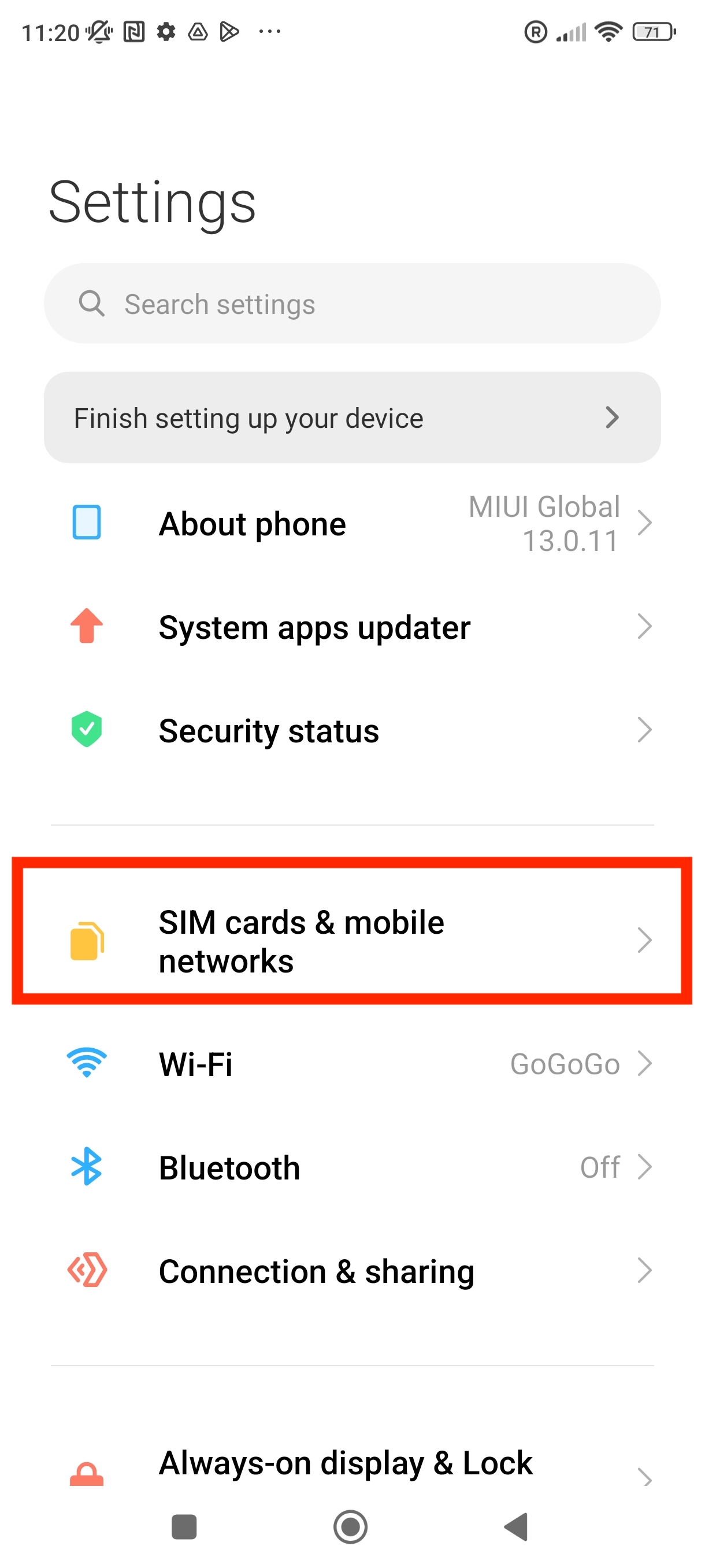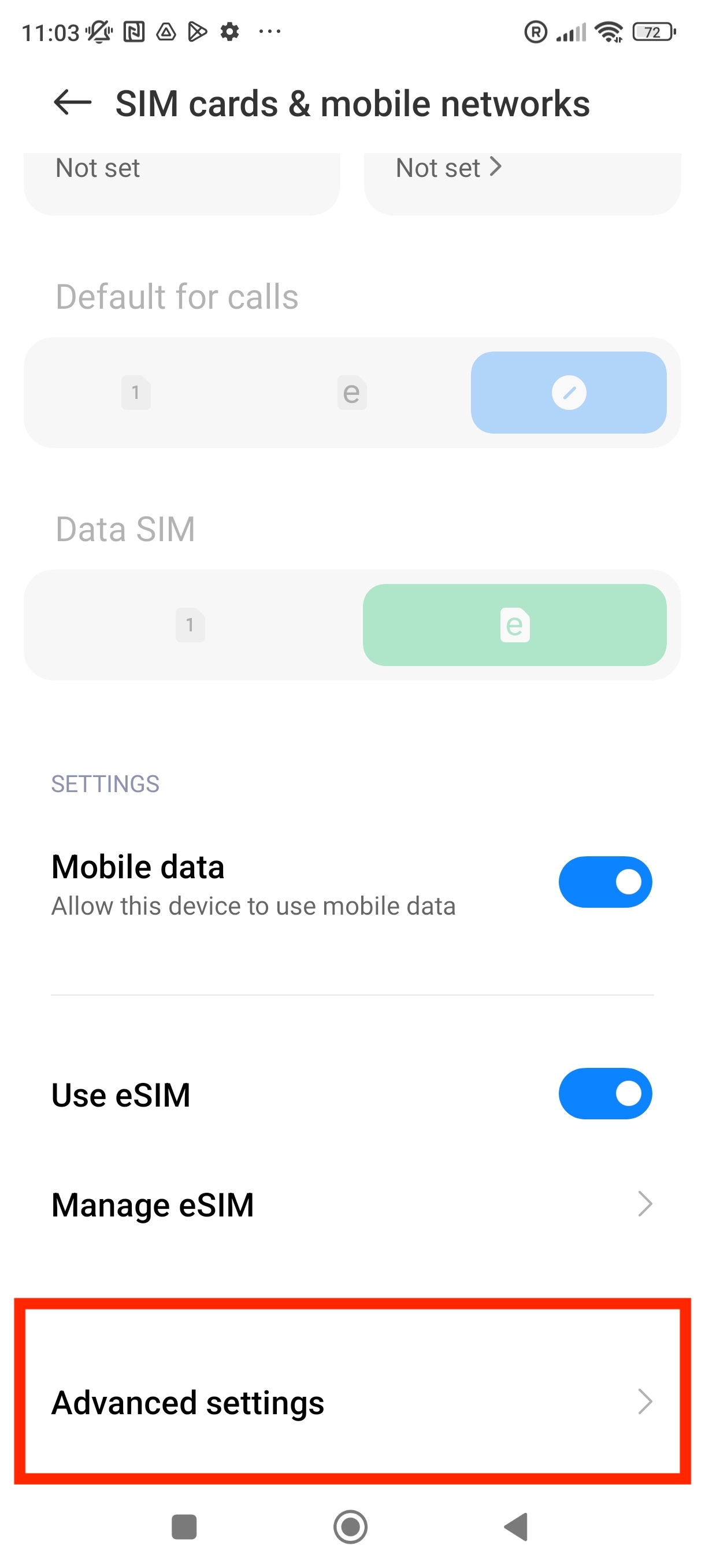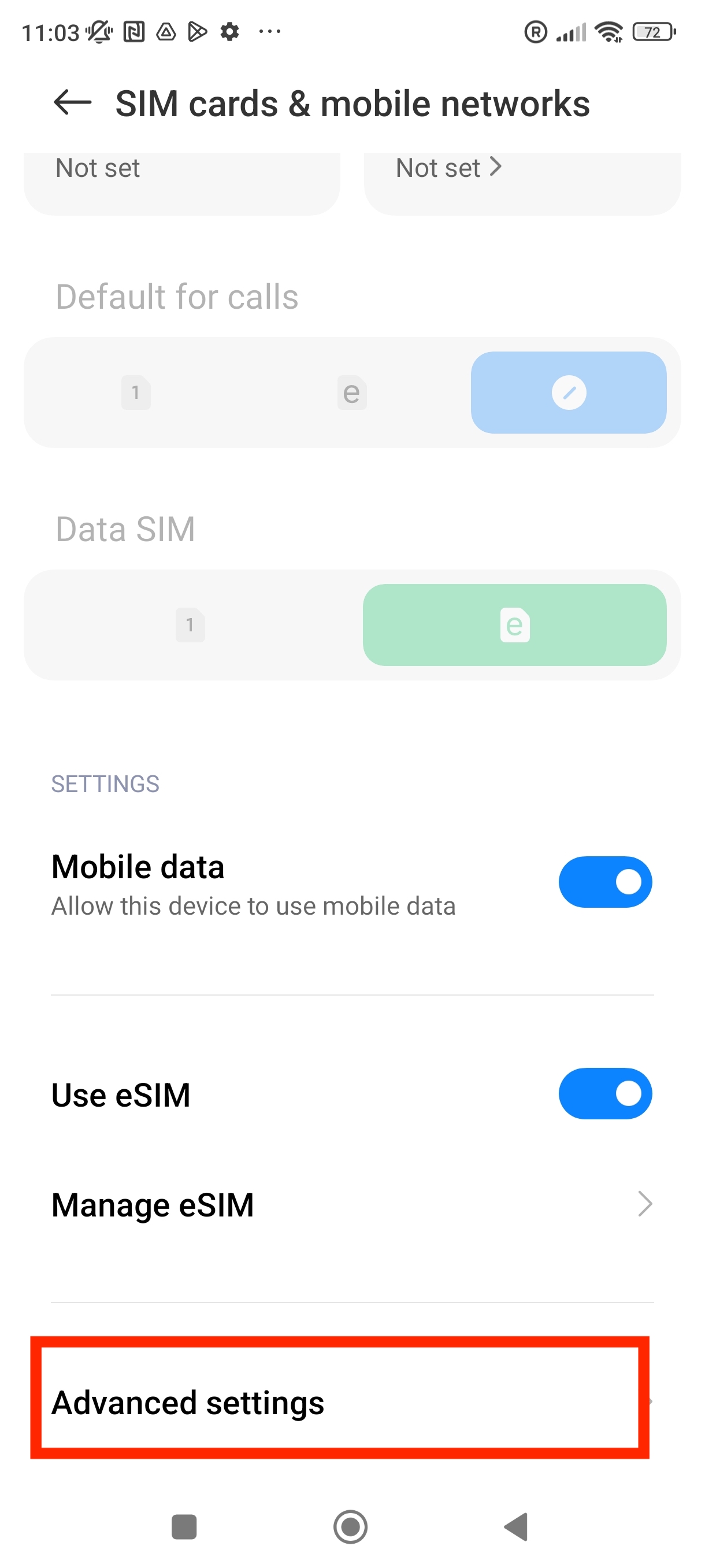 7. In "SIM cards & mobile network" > Scroll down until you see the option "Advanced settings"