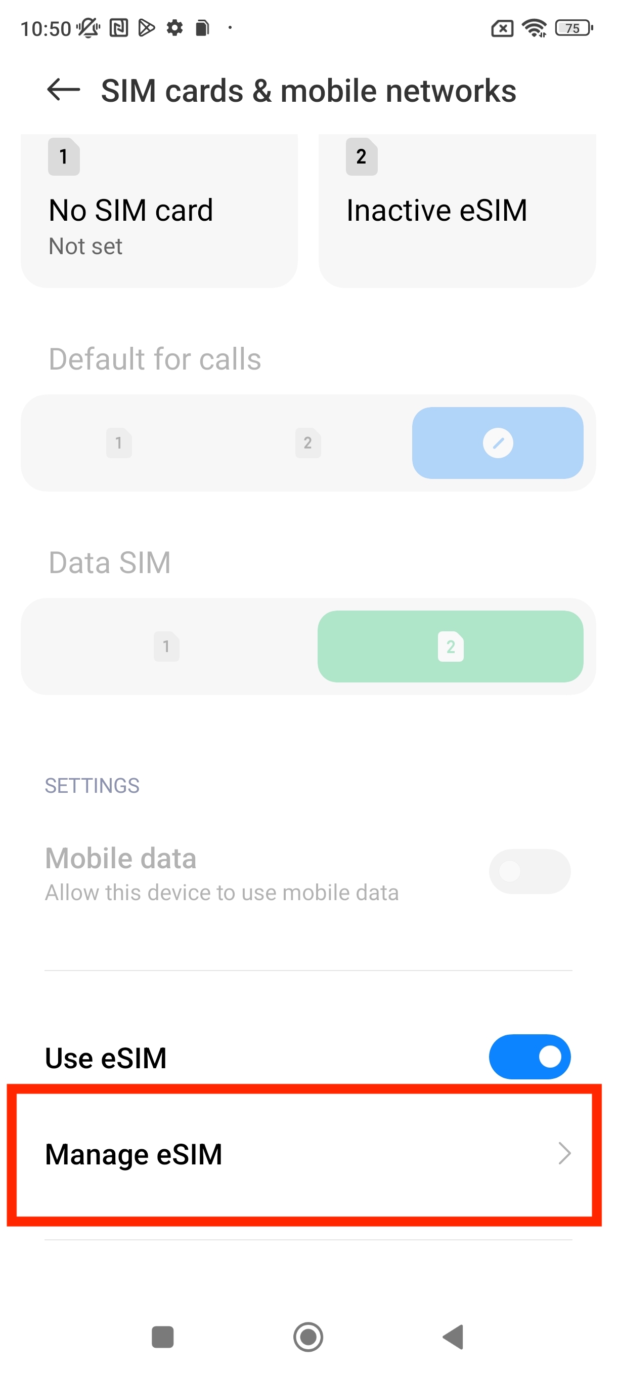 3. Scroll down until you see the option "Manage eSIM" and click on it.